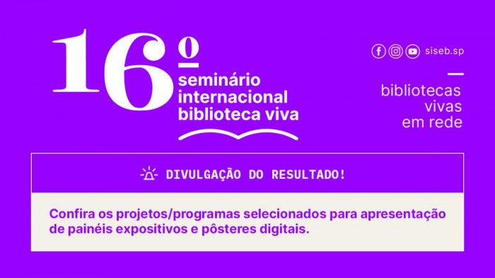Postado em 27 DE maio DE 2025Confira os pôsteres e painéis selecionados para o 16º Seminário Internacional Biblioteca Viva