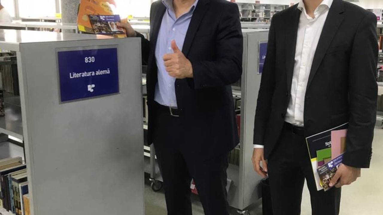 Feliz com o interesse pelo espaço, Pierre falou sobre o conceito "biblioteca viva" e pôde demonstrar como a BSP vive a experiência de ser praça cultural e casa da palavra, além de contribuir para a conexão entre as pessoas. Os alemães passearam pelos dois pisos da biblioteca e a foto de registro do encontro, claro, não poderia ser em outro lugar: a estante dedicada à literatura alemã.
