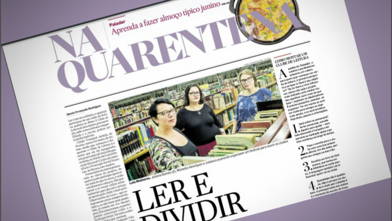 Em tempos de pandemia, de combate à Covid-19 e de confinamento, os Clubes de Leitura virtuais têm ganhado força e adesão das pessoas. Este é o tema da reportagem de capa do caderno Quarentena, do jornal O Estado de S. Paulo, nesta quarta, 24 de junho. Os encontros online para a discussão de livros nas programações das bibliotecas de São Paulo e Parque Villa-Lobos, ambas geridas pela SP Leituras, foram citados no texto da repórter Maria Fernanda Rodrigues - leia no site do jornal, apenas para assinantes.