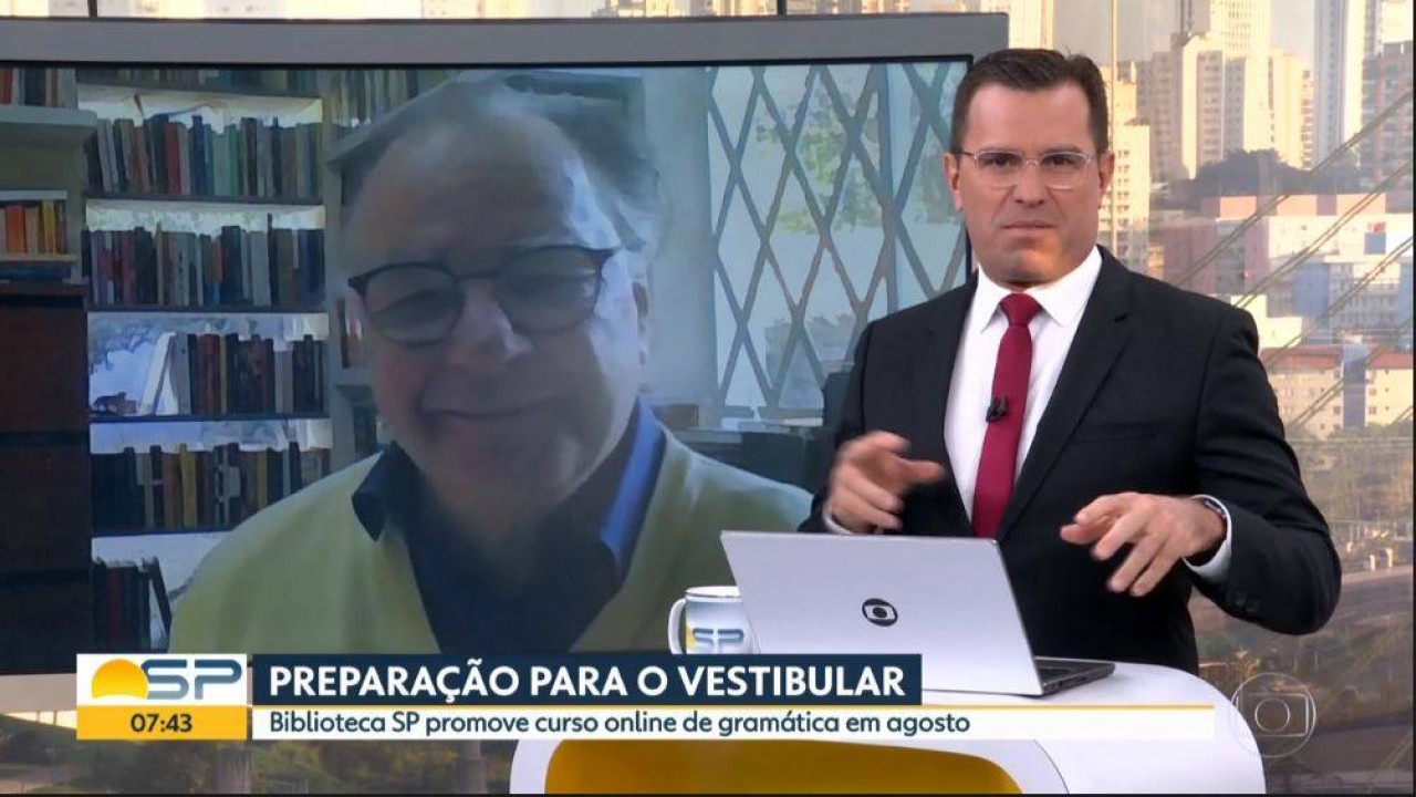 No começo da manhã de hoje, 7 de agosto, o telejornal Bom Dia São Paulo, da TV Globo, exibiu matéria sobre o Curso Online Gramática e Interpretação Textual para o Vestibular, que será realizado dentro da programação da Biblioteca de São Paulo (BSP), equipamento da Secretaria de Cultura e Economia Criativa do Governo do Estado de São Paulo.
